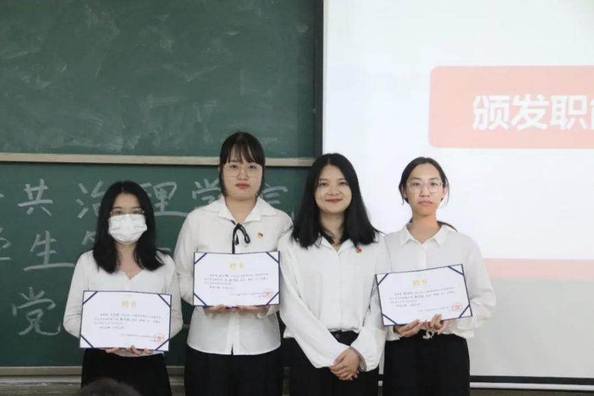 在本次会议的最后,学生第一党支部书记曾皖湘为职能小组成员颁发聘书,对过去一年中职能小组成员的工作态度和工作热情表示肯定和感谢。希望新一任职能小组成员能够在接下来一年的工作中延续认真、负责的态度,为支部的建设贡献自己的一份力。