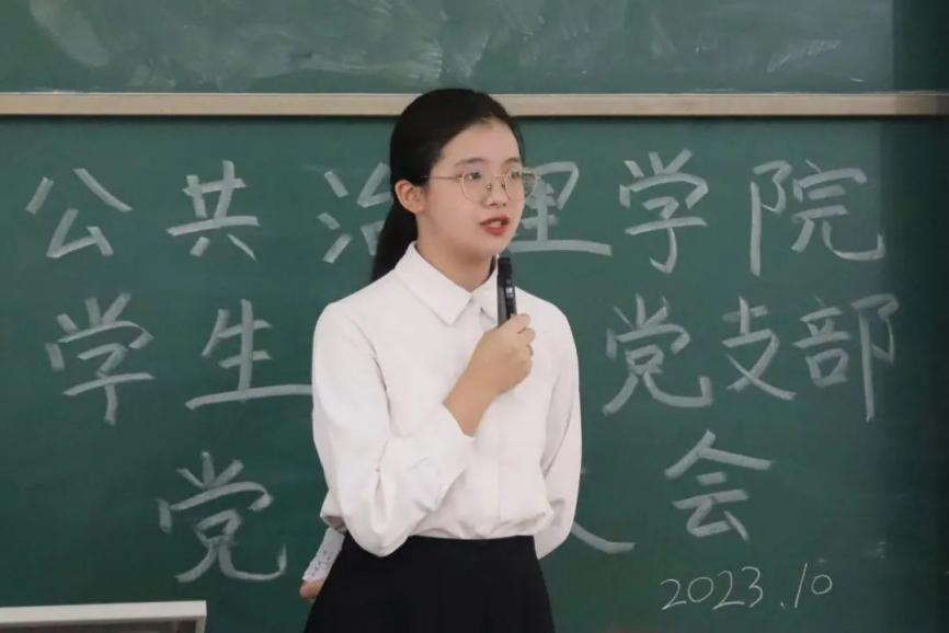 第四项议程 学生第一党支部书记曾皖湘做总结发言