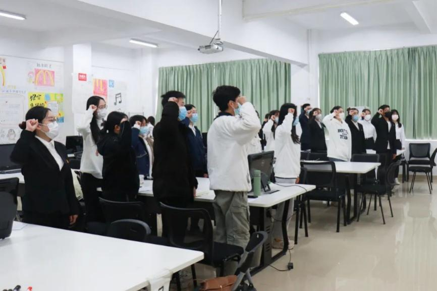 本次会议共有四项议程:一、奏唱《国际歌》;二、重温入党誓词;三、讨论、表决预备党员转正;四、学生第一党支部书记曾皖湘做总结发言。01奏唱《国际歌》