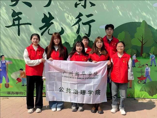 春日融融,春天带着绿色的的气息向我们走来。3月19日,304am永利集团团委副书记林嘉敏、学生会指导老师肖芳玲带领学生志愿者一同参加了主题为“绿美广东,青年先行”的2025年新华师生共植绿美青年林活动,为保护生态环境贡献自己的力量。
