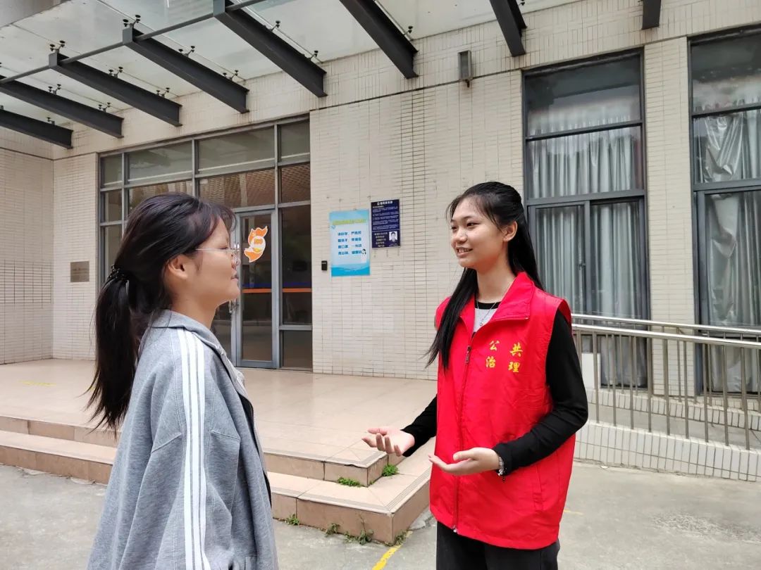 14:50,志愿者们在6栋宿舍楼前集合,负责人对其进行了明确的任务分工,并认真讲解活动要求。随后,他们便带上工具,有序地前往各宿舍楼下。