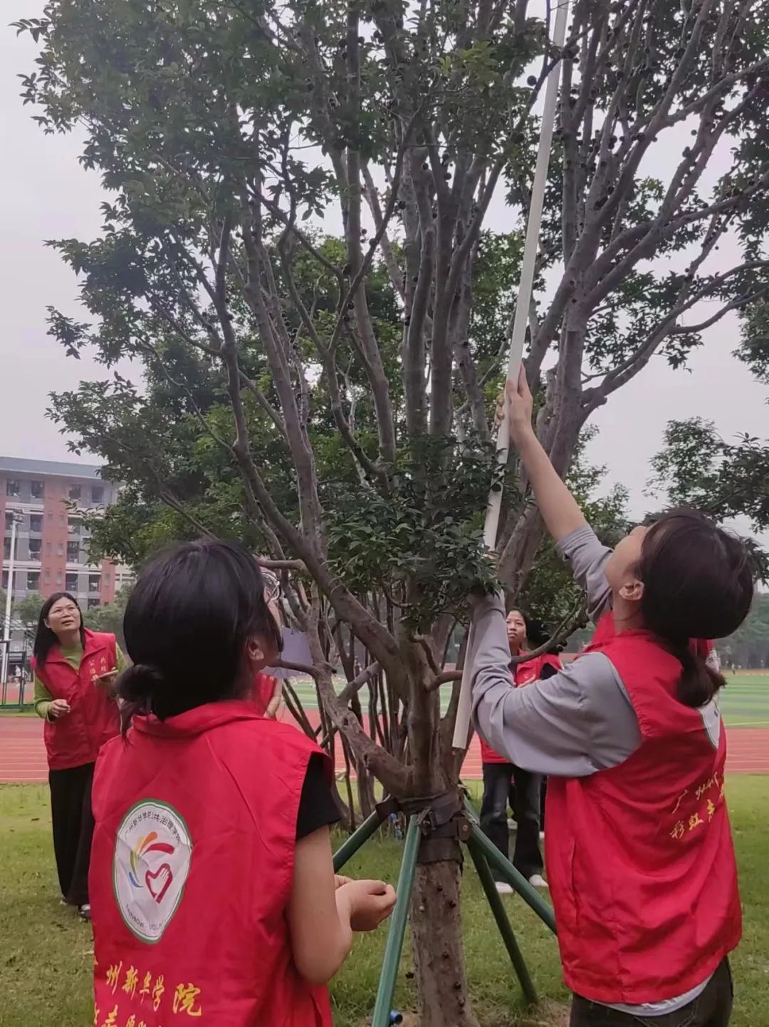 刘玉漩副书记与老师志愿者们为分配到的嘉宝果树悬挂标牌,活动后,院系也将承担起这些嘉宝果树的日常养护工作。未来,这些嘉宝果树将一同见证着304am永利集团师生们的发展与成长。